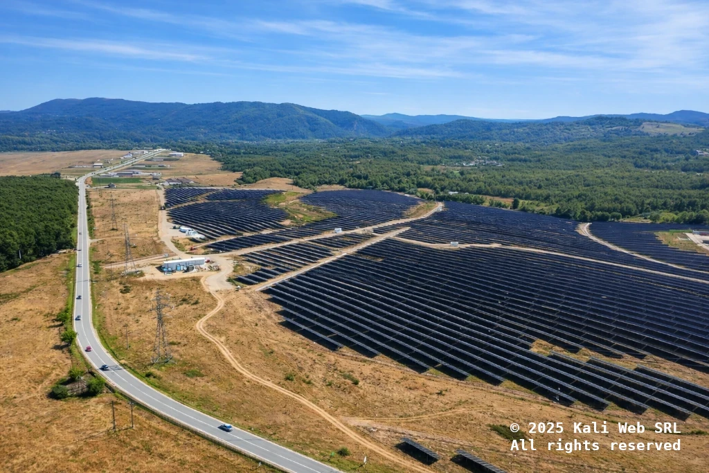 Fotografie cu drona a parcului fotovoltaic de la Slătioara