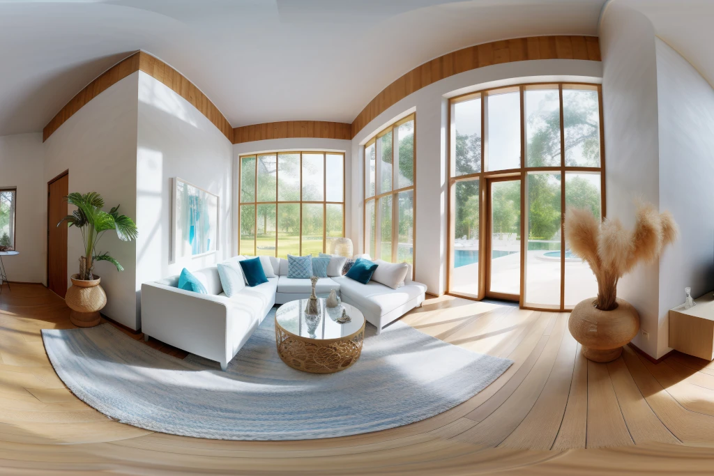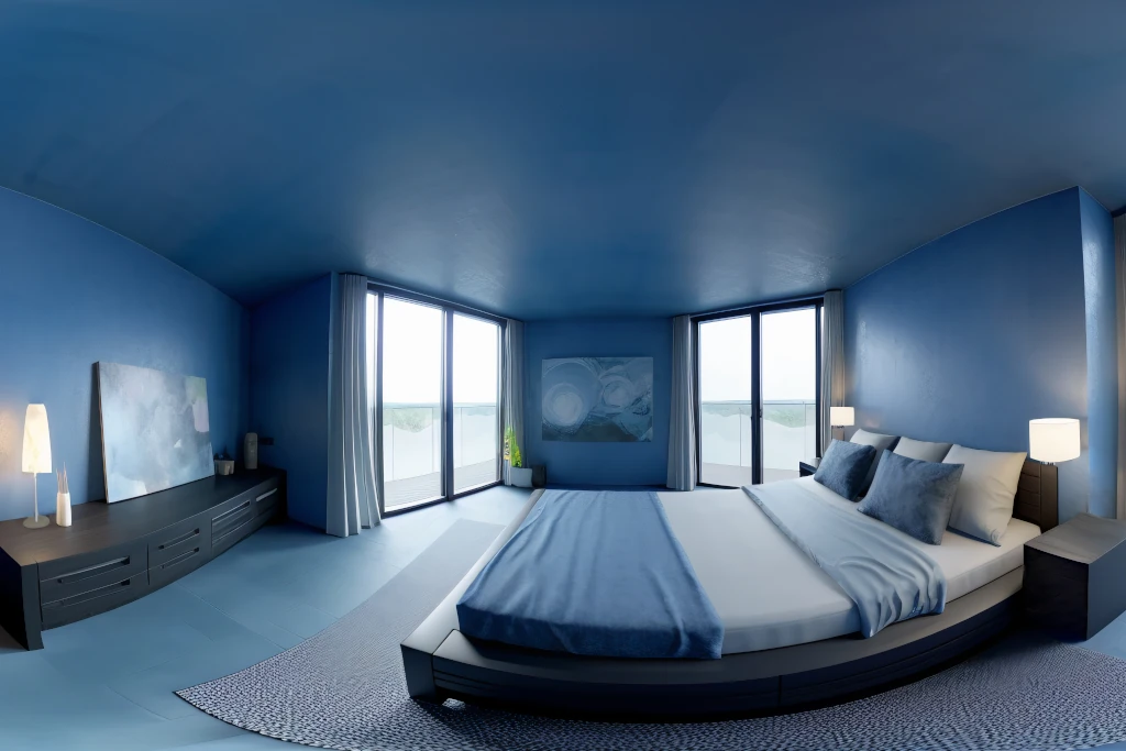 Imagine panoramică a unei camere de hotel de 5 stele.